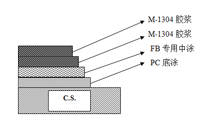 1.3 待中涂FB專用充分干燥后(一般為涂刷后兩小時以上至二十四小時以內),全面涂調和了固化劑RE的M-1304粘接劑一層,在現場按用量現調現用,配比比例為RE:M-1304=1:20。
