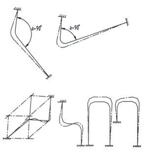 凡是利用管道本身某一管段的彈性變形,來吸收另一管段的位移變形的方法,稱為自然補償法。兩段以任意角度相連的直管,均有自然補償的能力。如圖1