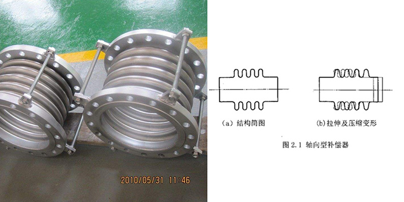 高溫軸向型波紋補償器是由一組或兩組不銹鋼波紋管和碳鋼連接件組成的,溫度范圍為小于等于1300攝氏度,使用壽命為2000次。該波紋補償器可補償高溫管道的軸向變形,由于產品需承受高溫,承受高溫部分又由耐火層和隔溫層(產品制作時完成)二部分構成。完全能滿足用戶對產品承受高溫及產品使用壽命的需要。