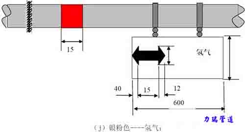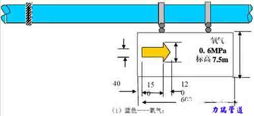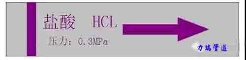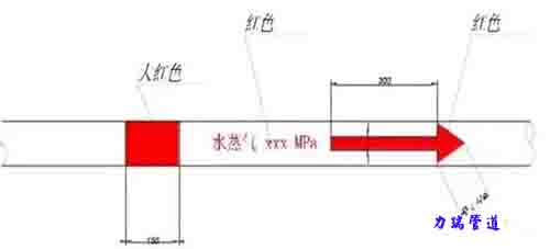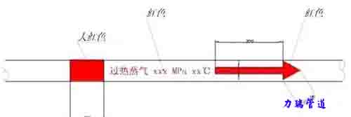 3、如果以上兩種方法仍然不能確定管內(nèi)流體的性質(zhì)或參數(shù)時,可采取在管道外表面涂刷流體的名稱或化學(xué)符號,也可標出流體的溫度和壓力作為標識。