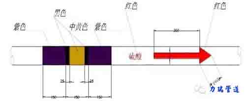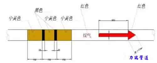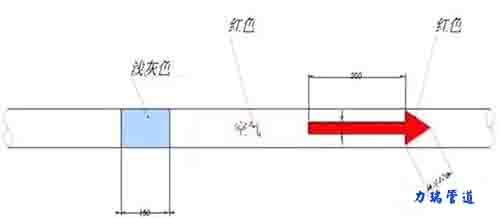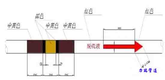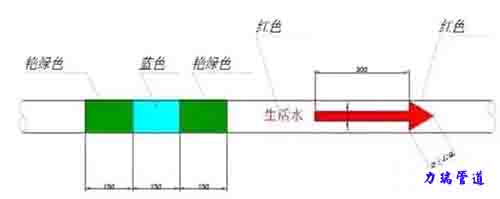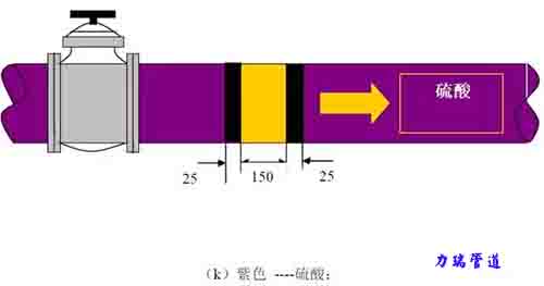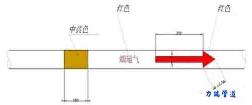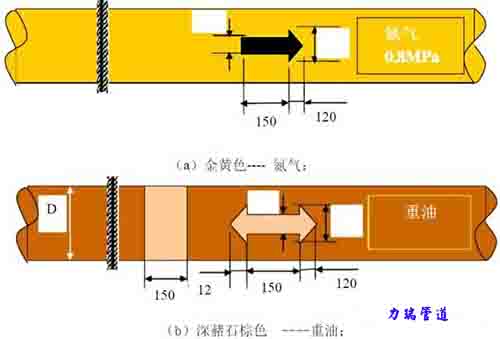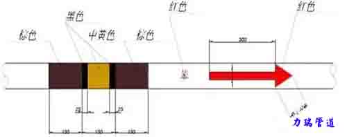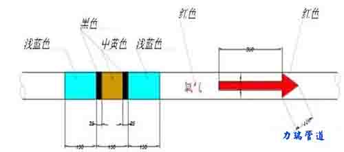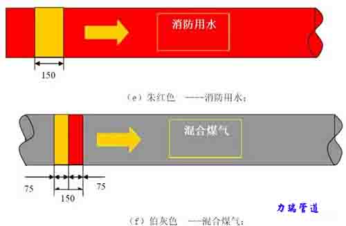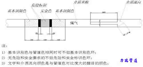 2、如果輸送流體的溫度或成分不同,需加以區(qū)別時,可以在已涂色的管道表面上,選擇一種溫度或成分涂刷色作為標識。