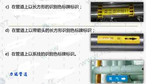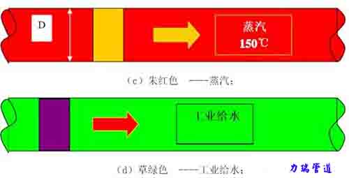 Φ273mm以下的管道的基本識別色和流向、壓力、溫度等標識方法參考圖(d、e圖)