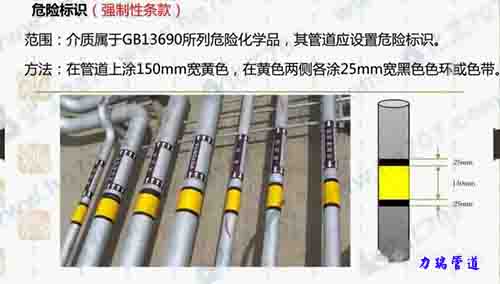 1適用范圍:管道內(nèi)的物質(zhì),凡屬于GB13690所列的危險化學(xué)品,其管道應(yīng)設(shè)置危險標識。