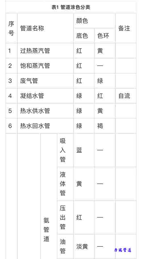 3、對于不銹鋼管、有色金屬管、玻璃管、塑料管以及保溫外用鉛皮薄護罩時,均不涂色。