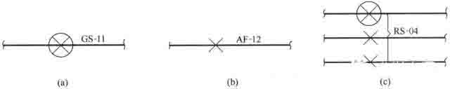 (a)同軸異徑管標注 (b)同管道號不同管徑標注 (c)同管道號不同等級