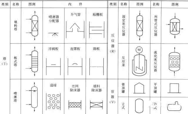 常用設備、機器圖例見下表。