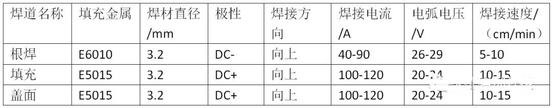 在焊接操作過程中,采用連弧焊。大間隙的部位用小電流,小間隙的部位用大電流。環焊縫焊接參數建表2和表3