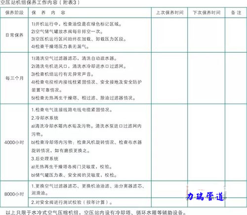 (9)更換油和油過濾器,當油分離器上壓降超過1bar時,更換油分離器。檢查油水分離器及排污管路暢通情況,及時疏通管路。