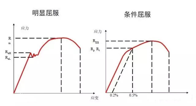 3、屈服強(qiáng)度以規(guī)定發(fā)生一定的殘留變形為標(biāo)準(zhǔn),如通常以0.2%殘留變形的應(yīng)力作為屈服強(qiáng)度,符號(hào)為Rp0.2。