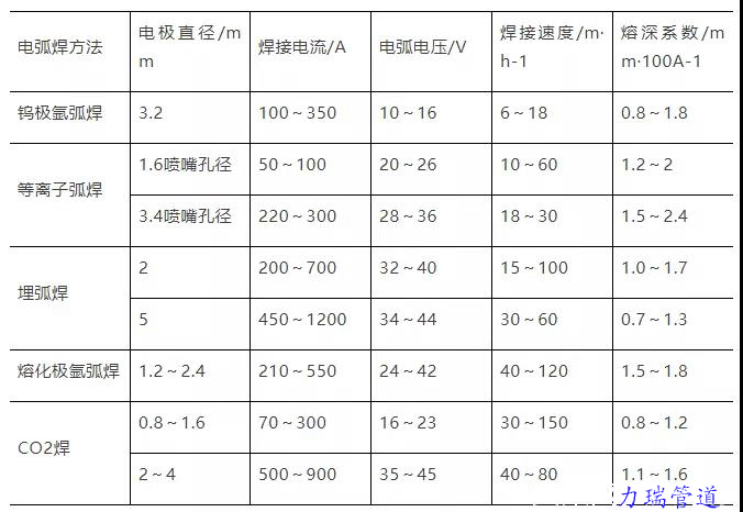 1)隨著電弧焊焊接電流增加,作用在焊件上的電弧力增加,電弧對焊件的熱輸入增加,熱源位置下移,有利于熱量向熔池深度方向傳導(dǎo),使熔深增大。熔深與焊接電流近似成正比關(guān)系,即焊縫熔深H約等于Km×I。式中Km為熔深系數(shù)(焊接電流增加100A導(dǎo)致隔熱管托焊縫熔深增加的毫米數(shù)),它與電弧焊的方法、焊絲直徑、電流種類等有關(guān)見表1-1。
