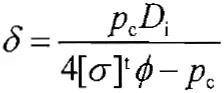 圓筒的中徑公式依據(jù)當(dāng)量強(qiáng)度和失效準(zhǔn)則有:,其中D=Di+δ,整理后得到大家經(jīng)常使用的公式:。