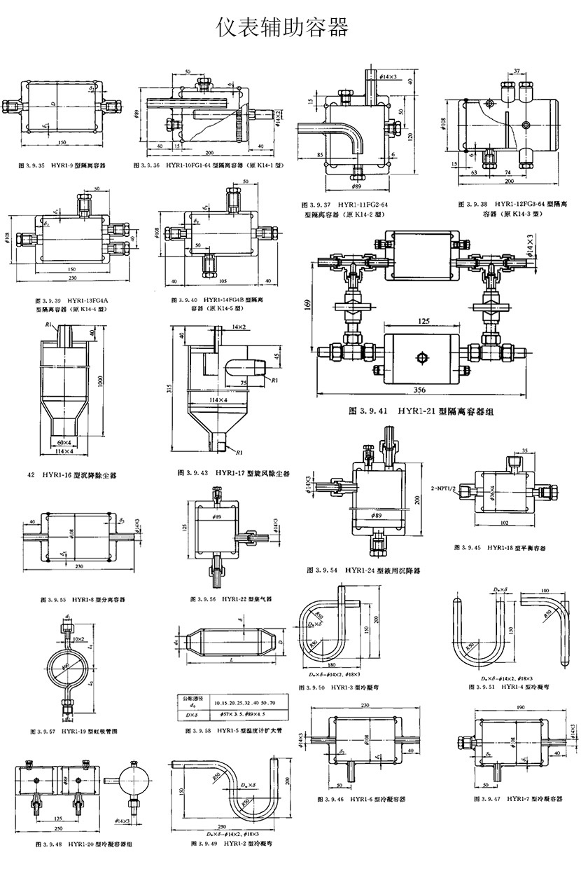儀表輔助容器:隔離容器、沉降除塵器、旋風(fēng)除塵器、平衡容器、分離容器、集氣器、壓力表緩沖彎管、虹吸管圍、溫度計擴大管、冷凝彎、冷凝容器